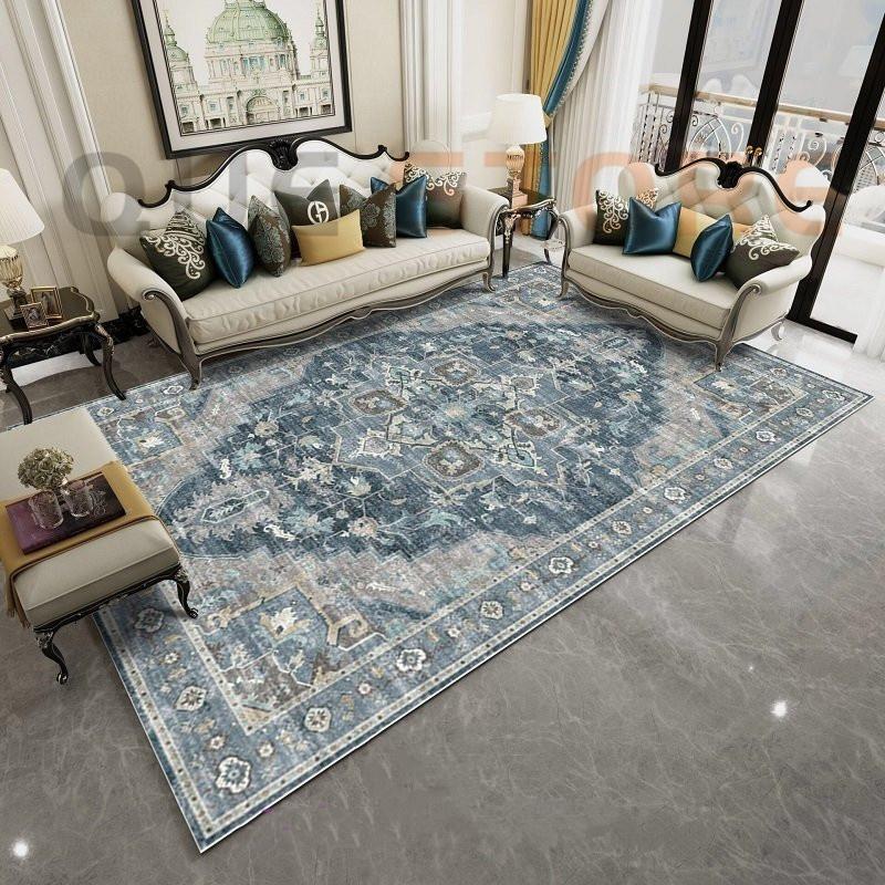 部屋全体が暗くなってしまうかもと心配な方は、ダークトーンベースで模様の入ったラグも素敵ですよ。